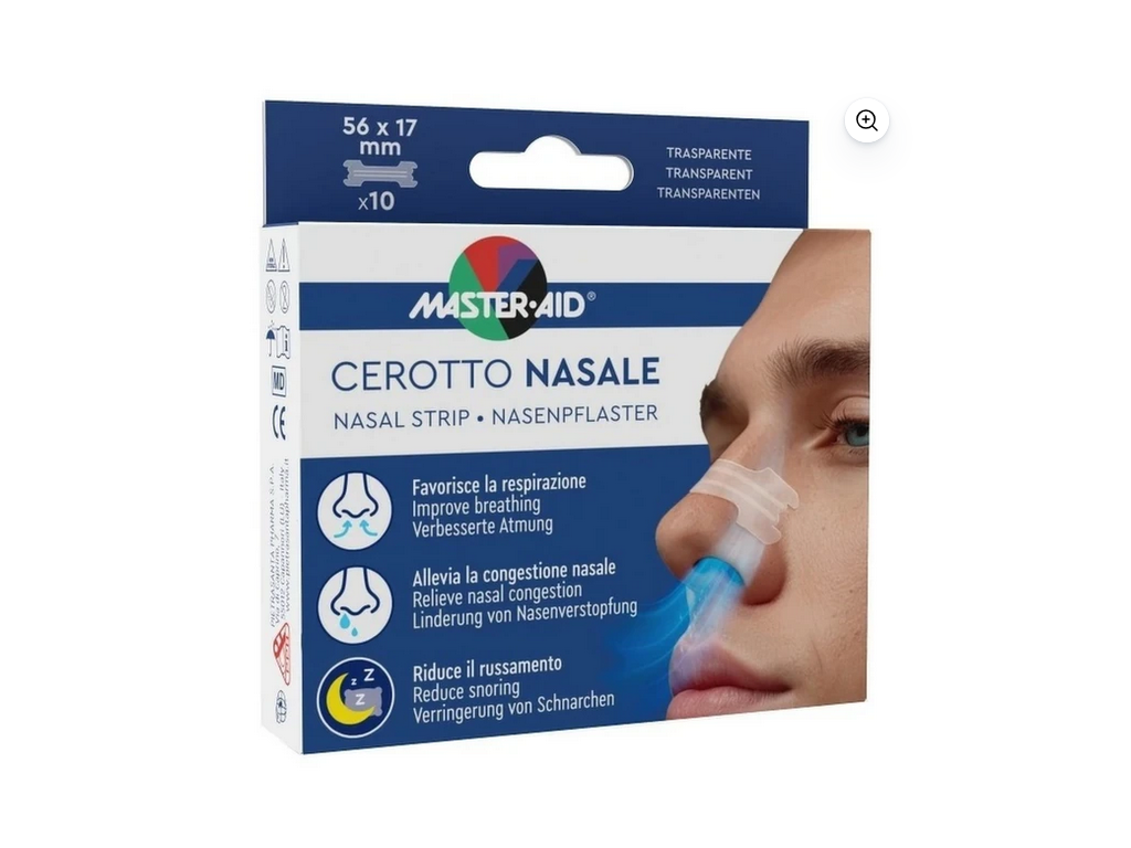 Master Aid Nosní náplasti 10 ks a Master Aid Nosní náplasti 30 ks jsou nosní náplasti, které usnadňují dýchání při dočasném nebo při chronickém ucpání nosu a přináší okamžitou úlevu při rýmě, alergii nebo vychýlené nosní přepážce. Snižují chrápání a jsou vhodné pro sportovce při sportovní aktivitě.