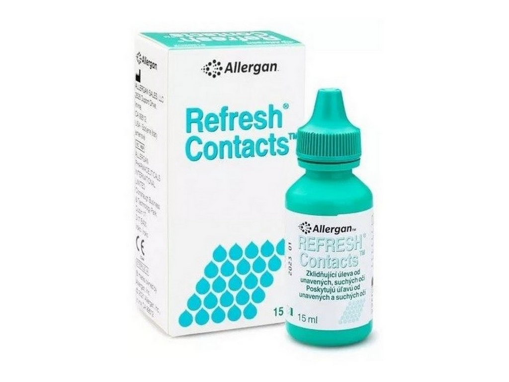 Referesh Contacts roztok je indikován ke zmírnění suchosti, nepohodlí a podráždění spojených s nošením kontaktních čoček. Jsou kompatibilní se všemi typy materiálů čoček (měkké a tvrdé plynopropustné kontaktní čočky) a obecně bezpečný pro použití na povrchu oka.
